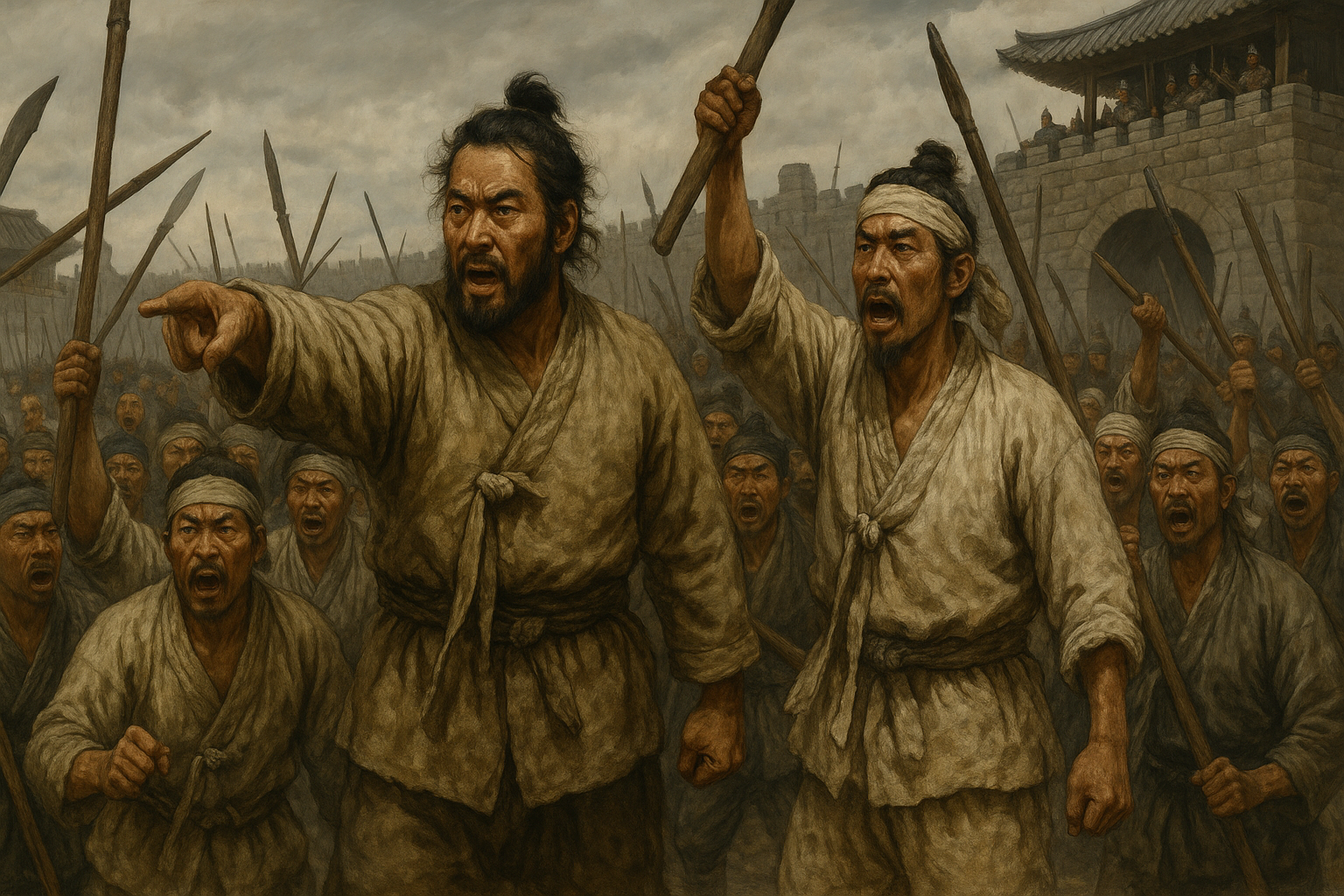 1176년, 충청도 공주와 서해 지역을 중심으로 망이와 망소이라는 형제가 반란을 일으켰습니다. 두 형제는 농민과 하층민의 지지를 받으며 무신정권의 폭정에 저항했고, 세력을 빠르게 확장했습니다. 초기에는 지역 관청을 습격하고 세금을 거두는 관리들을 몰아내며 백성들의 환호를 얻었으며, 봉기의 기세는 고려 정부를 위협할 만큼 커졌습니다. 이는 당시 백성들이 얼마나 억눌린 삶을 살고 있었는지를 잘 보여주는 장면입니다.