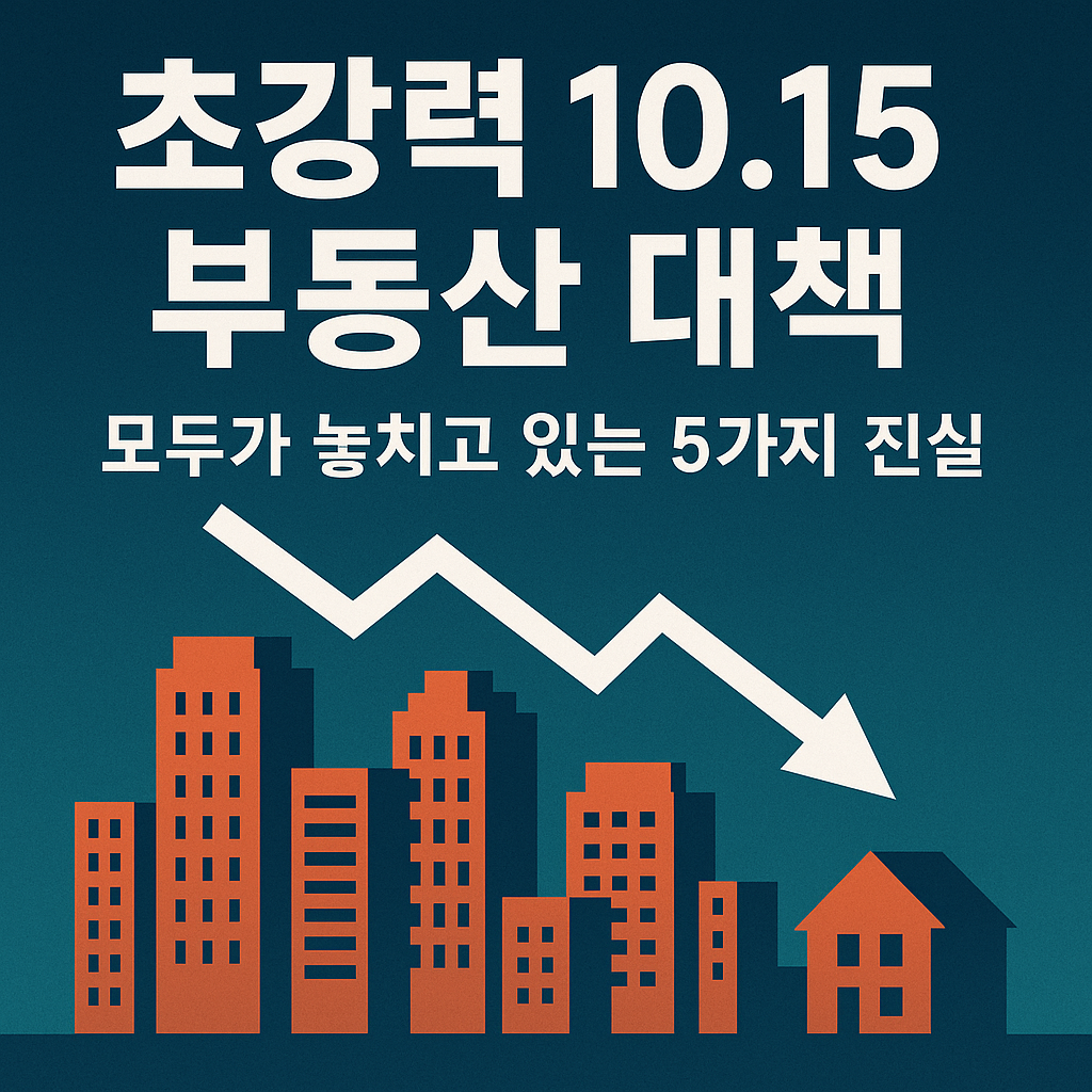 초강력 10.15 부동산 대책, 모두가 놓치고 있는 5가지 진실요약: 2025년 10월 15일 정부는 서울 전역과 경기 주요 지역을 동시에 규제지역 및 토지거래허가구역으로 묶는 초강력 부동산 대책을 발표했습니다. 발표 직후 시장은 혼란에 빠졌고, ‘내 집 마련의 기회가 사라진 것 아니냐’는 불안이 커졌습니다. 그러나 언론의 헤드라인만으로는 이번 대책의 진짜 의미를 이해하기 어렵습니다. 이번 글에서는 여러 전문가의 분석을 바탕으로, 대부분이 놓치고 있는 다섯 가지 진실을 구체적인 데이터와 함께 풀어봅니다. 서론: 혼란스러운 시장, 헤드라인 너머의 진짜 이야기10월 15일, 정부가 서울 전역과 경기도 주요 지역을 규제지역과 토지거래허가구역으로 동시에 묶는 초강력 부동산 대책을 발표했습니다. 발표 직후 국토부..